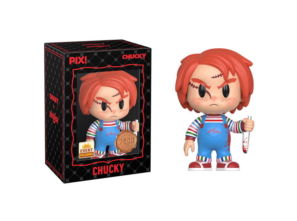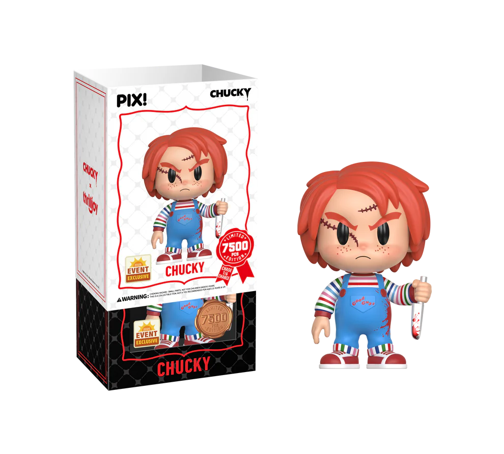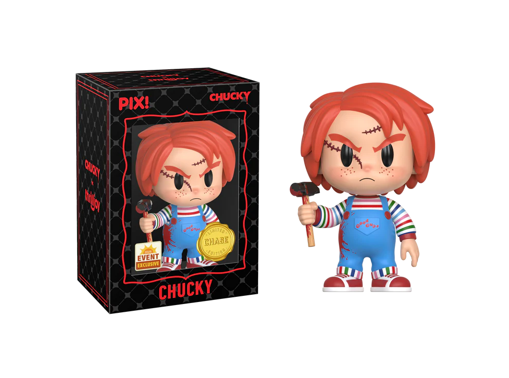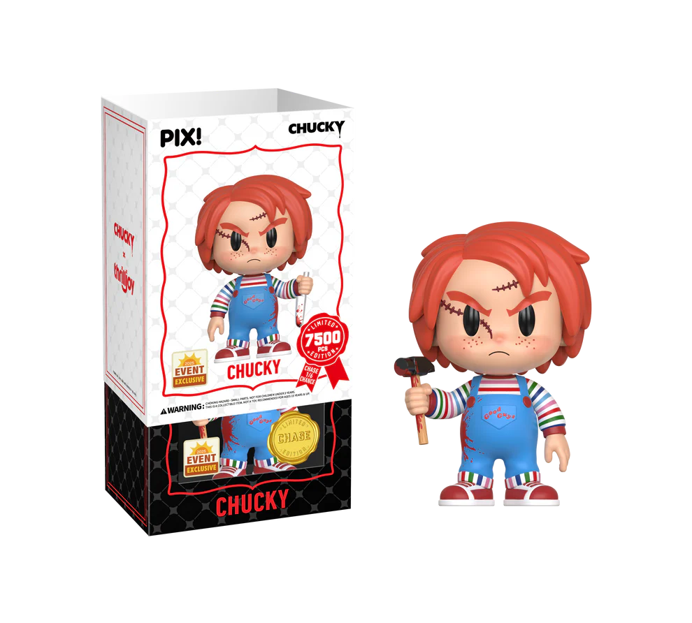 Wanna play? Featuring Chucky in his striped shirt, good guy overalls, and hisunforgettable red hair, Chucky is ready for his next kill hammer hand. This PIX! isperfect for all fans who love classic horror movies.